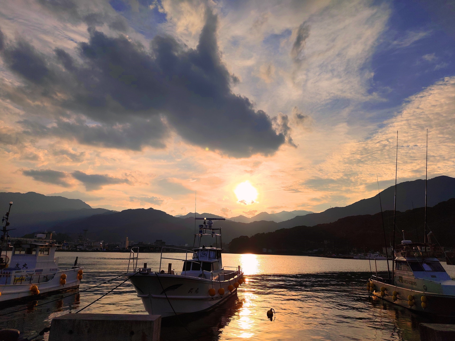 朝焼け 夕焼け 夏の夕暮れの尾鷲港 壁紙19x1440 壁紙館